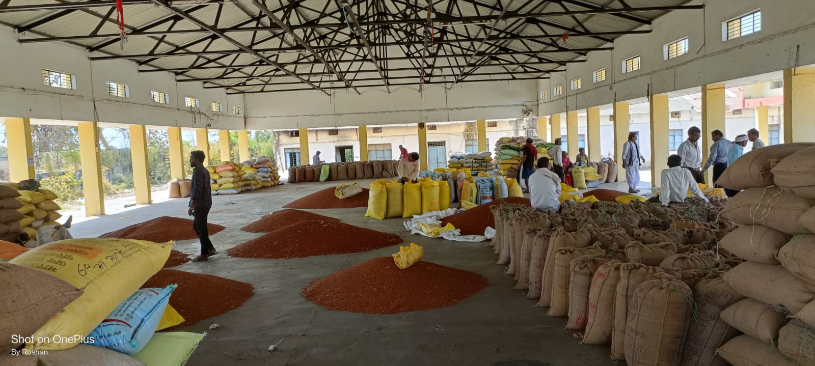 Auction yard with shed for grain auction, 6 stalls for traders, 1 godown, office, check post, toilets, urinals, 2 water tanks for cattle, well, water tank, canteen 4, iron pegs for tying cattle in the bull market, firewood, street lights for lighting etc. are available. Also, the weight of the farmer's farm produce is measured on an electronic scale.